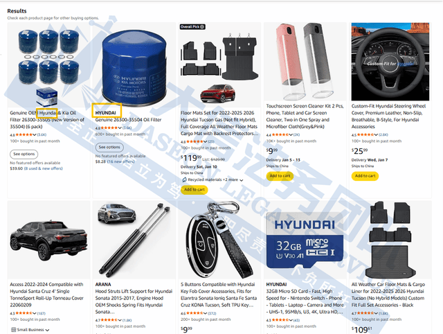 现代汽车、通用汽车、丰田、日产等品牌都正在2025年下半年倡议了大规模的商标诉讼,曾经成为汽配卖家不成轻忽的“高风险名单”。